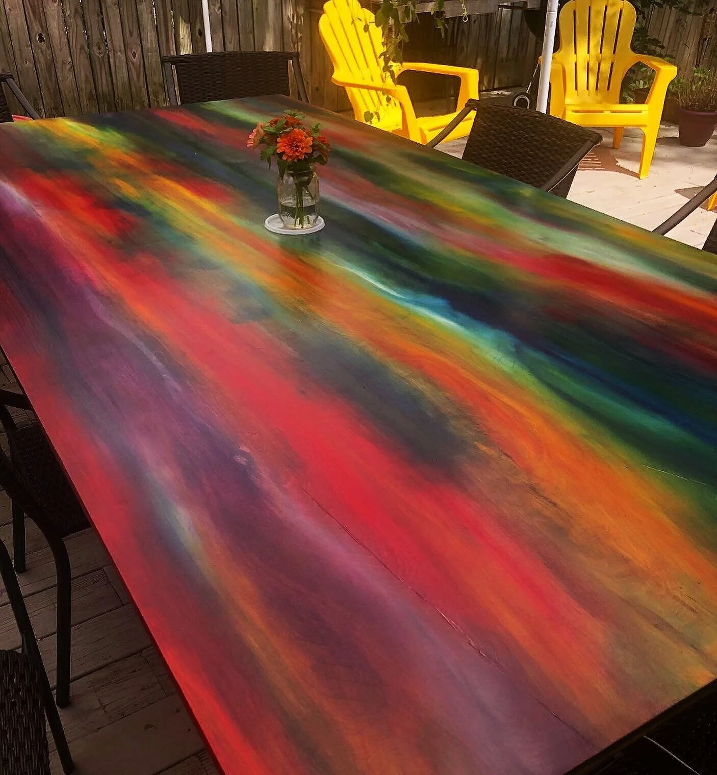 In the summer of 2020, I was on a mission to create a large tabletop to host outdoor gatherings with friends and family on my deck. I wanted to make it myself, and, being a painter, this is the concept I landed on. Soon after, I wanted a small coffee table - I made one in the same way. And so the seed was planted for my start-up furniture company, Cosmic Timber.